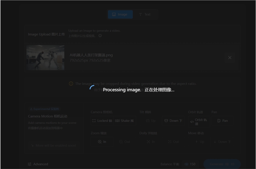 选择图像模式后,直接上传图像并点击生成以将图像转换为视频。