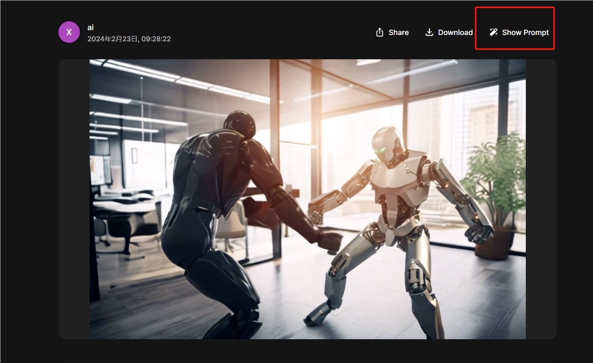 生成视频后,您可以在视频界面查看所使用的提示参数。如果您喜欢这个效果,可以直接选择这个参数模板来生成其他视频。