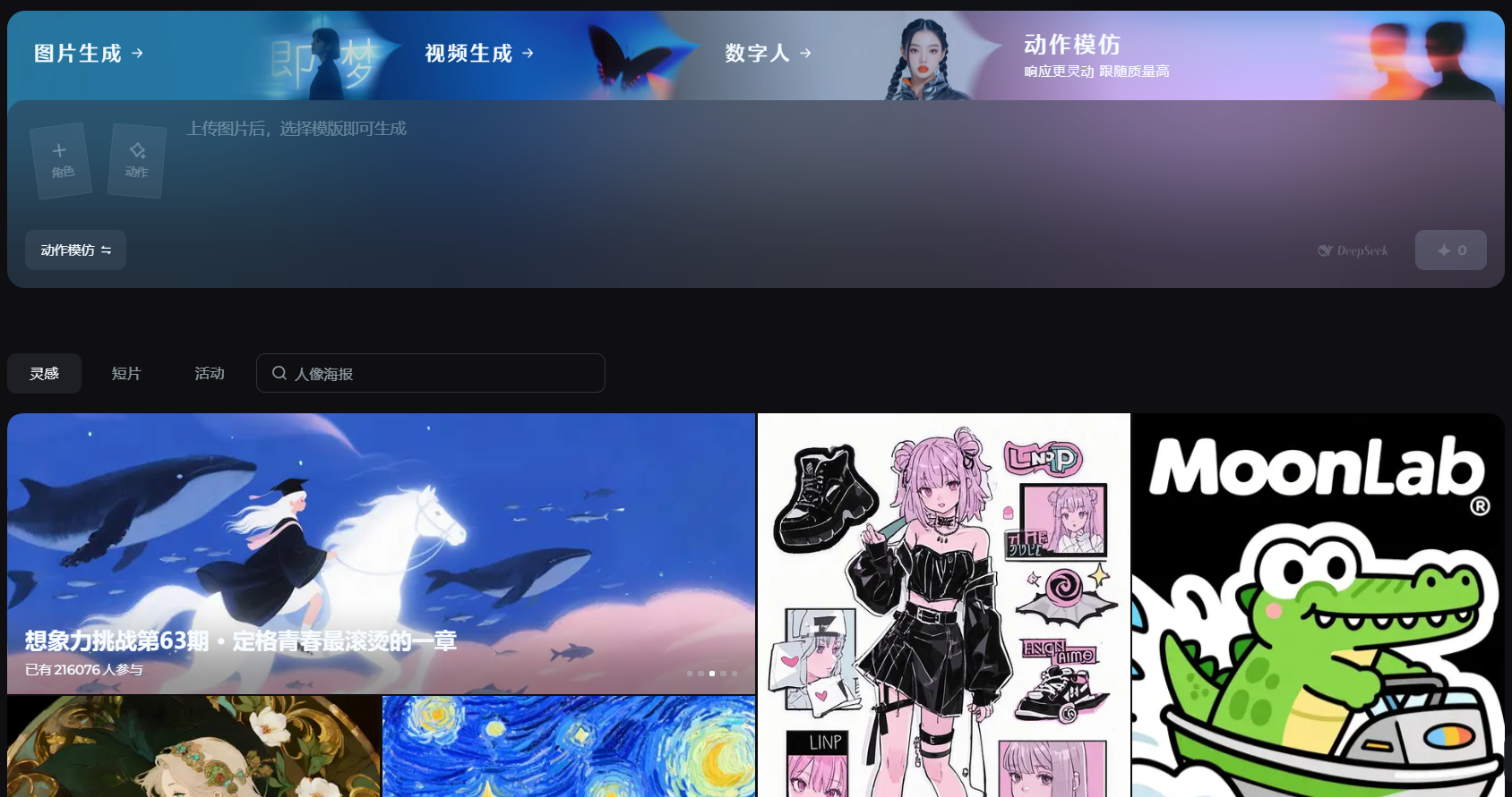 在即梦操作界面中,找到 “动作模仿” 功能模块并点击进入。选择 “导入素材” 选项,将拍摄好的动作视频或本地动作文件上传至即梦平台。上传完成后,平台会自动解析动作数据,用上传的素材生成动作模仿的基础内容。